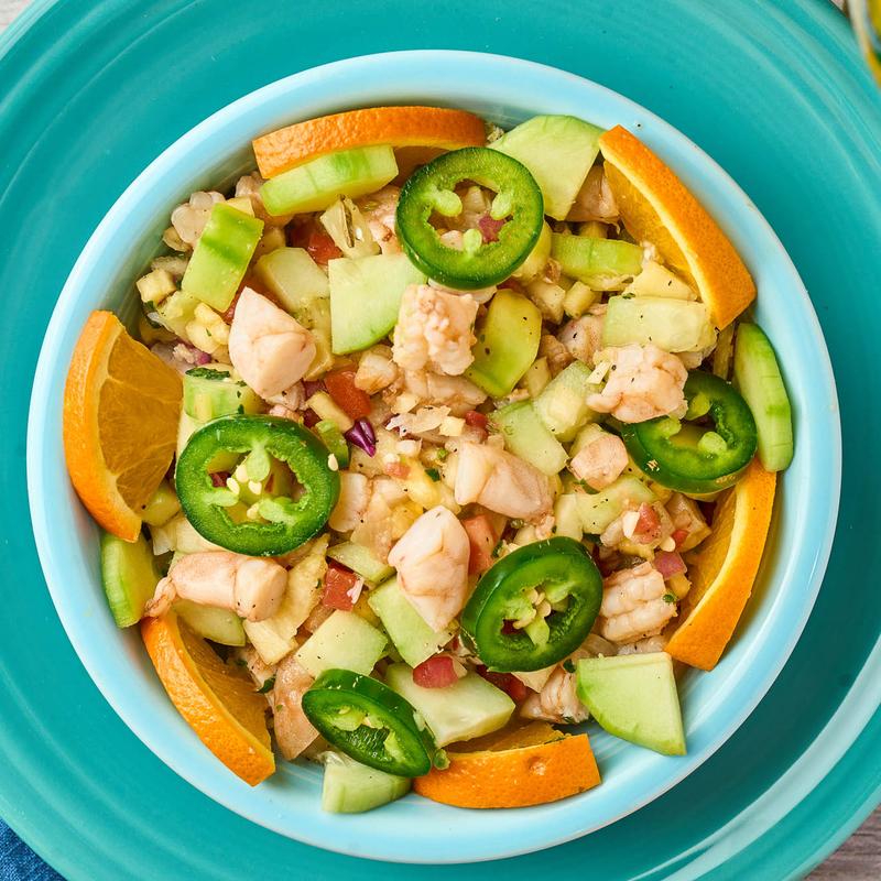 Citrus marinated shrimp, avocado, jalapeño, tomatoes, onion, lime and cilantro.